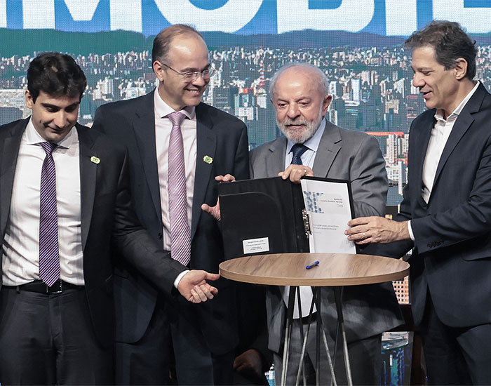 O Governo Federal, por meio do Ministério da Fazenda e do Ministério das Cidades, junto com o Banco Central (BC) apresentou hoje, 10 de outubro, um novo modelo de crédito imobiliário. Durante o evento, em São Paulo, que contou com a presença do presidente da República, Luiz Inácio Lula da Silva, além de ministros e representantes de entidades ligadas à habitação e construção, Fernando Haddad, ministro da Fazenda; Márcio Albuquerque, ministro substituto do Planejamento e Orçamento; e Gabriel Galípolo, presidente do Banco Central assinaram a Resolução do Conselho Monetário Nacional (CMN), que estabelece o novo modelo de crédito imobiliário.